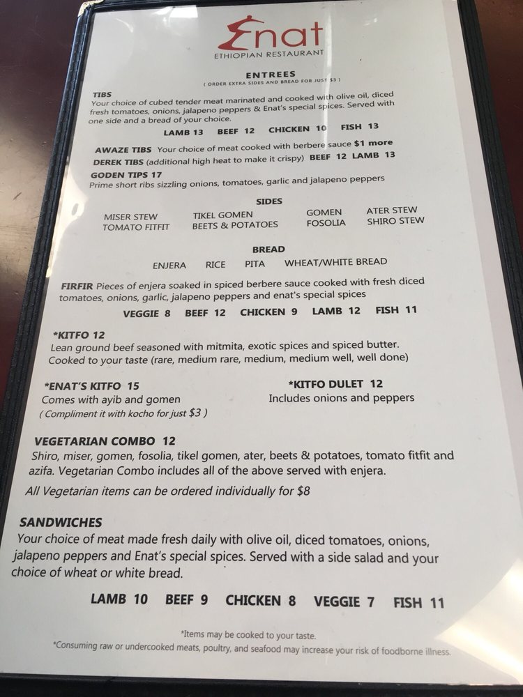 Welcome to Enat Ethiopian Restaurant, where the rich, flavorful essence of Ethiopian cuisine comes alive in Charlotte, NC. Located at 4450 The Plz Ste D, this delightful eatery invites you to embark on a culinary journey that celebrates authentic spices and communal dining.